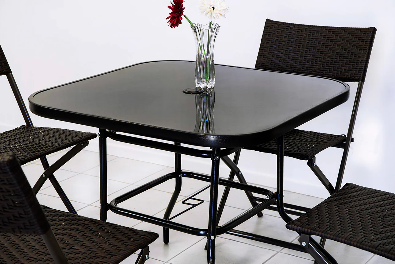 The 80cm Square Table is perfect for achieving a stylish modern look and can be used either indoors or outdoors on covered verandas, decks, or patios. It is sturdy in its construction. The large square dining table is complemented with a polished, 5mm luxury tempered glass top. It is innovative in design and a modern, functional addition to your outdoor or indoor entertaining area.