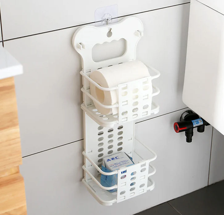 Folding Storage Basket Bathroom Shelf Kitchen Organiser (White)
