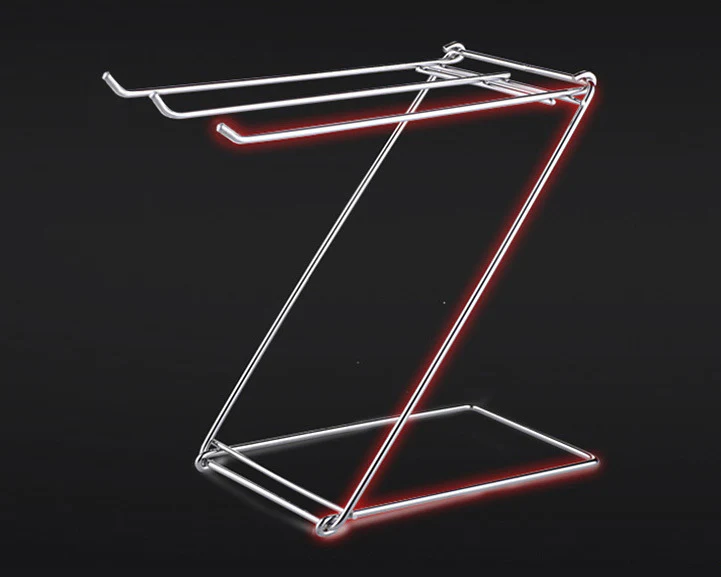 Stylishly designed Z-shaped stainless steel tabletop towel rack, perfect for kitchens, bathrooms, bookshelves, cabinets, and offices. Foldable, sturdy, and durable stainless steel frame. Instant setup.