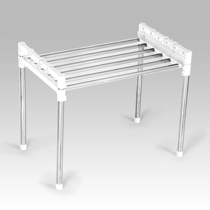 Designed with a spacious and stylish metallic structure, this shelf caters to practical uses, whether providing a spot for your microwave, displaying your favorite kitchenware, or decluttering your workspace. Boasting a simple yet durable design, this shelf delivers both aesthetic appeal and functionality.